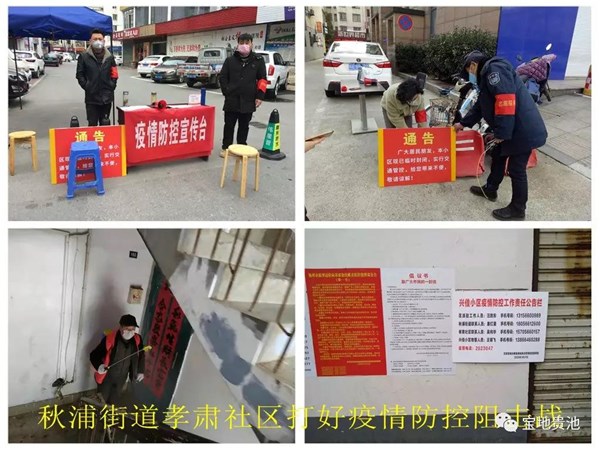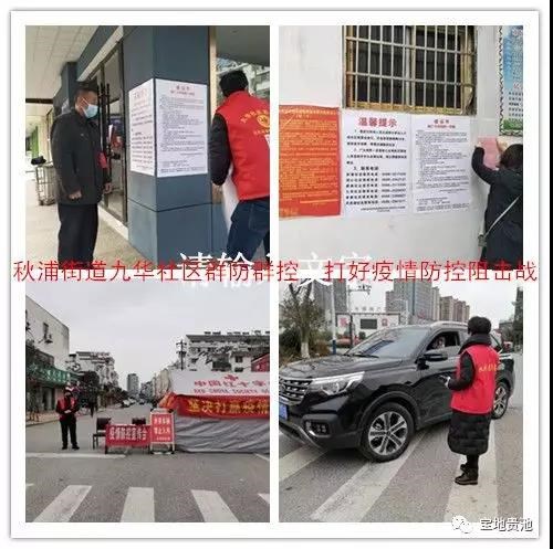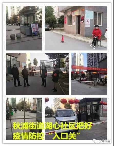 多方力量充实社区防控一线,从1月26日开始,秋浦街道除留守数人做好值班值守工作,其余力量全部下沉一线,组织街道社区工作人员、行政执法队员、小区物业人员、党员志愿者以及群众骨干代表,分小区开展疫情防控宣传,摸底排查武汉来池人员与外来车辆,以最快的速度向小区居民、经营户发放“致居民的一封信”3万多份,张贴公告、提醒等1000多张,在1600多个楼道口张贴“一封信”,尽力实现“不漏一户、不漏一人”的全覆盖;排查期间,先后劝阻红白喜事8起,受理群众举报近百余起,以密集的知识宣传和信息公告,最大程度缓解辖区居民的不安与恐慌情绪。