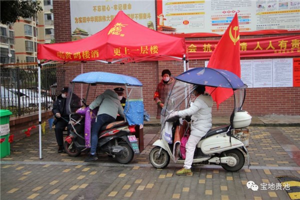 像这样的工作日常,自正月初七开始,汪漪一刻都没有停歇过。她每天早上八点就会准时赶往新城明珠小区,除了中午吃饭时简单休息一下之外,一直要忙到傍晚六点左右才能换班离开。由于一直在户外工作,上厕所也是十分不便。她每天出门时会带上一杯水放在车里,口渴时才喝上几口,这样便能减少去厕所的趟数。而一碰到下雨天,由于一站就是一整天,鞋子都会浸湿。“发现鞋子进水了之后,我晚上回家就赶紧泡个脚,祛祛寒气。这种关键时刻,比我们辛苦的人还有很多,我们作为一名党员更不能退缩。”
