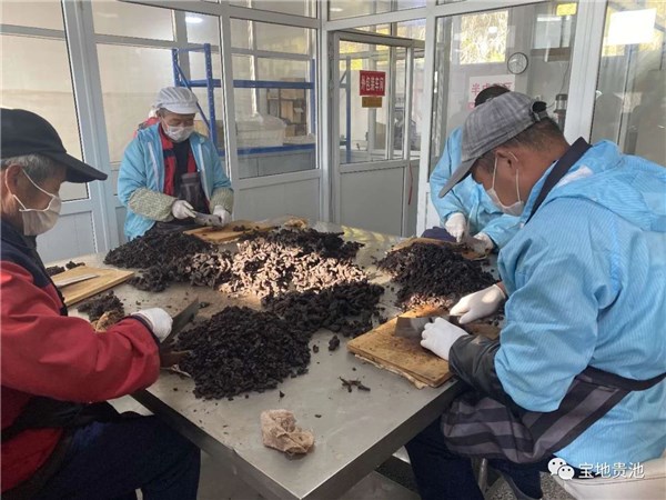 不一会儿功夫,生产车间里就一片繁忙景象。进入工作状态的李银保动作娴熟的端起整筐黄精放进蒸笼,随后又把蒸好的黄精拿到室外摊晒开来。李银保告诉笔者,测量体温、佩戴口罩、手部消毒等防护措施是这些天上下班都要做的事,虽然比以往上下班要繁琐些,但对当前的疫情形势来说,这些繁琐让大家心里更踏实安心。