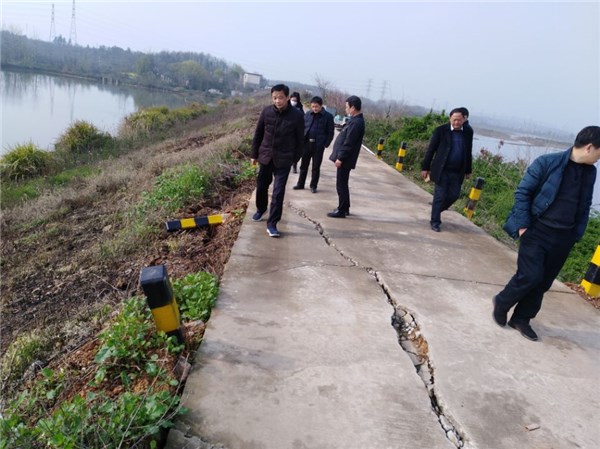 近日,江口街道在开展汛前检查发现查村圩堤防背水坡发生长近100米,滑坡裂缝宽0.2--0.4米重大滑坡险情,街道第一时间向区水利部门进行了汇报。