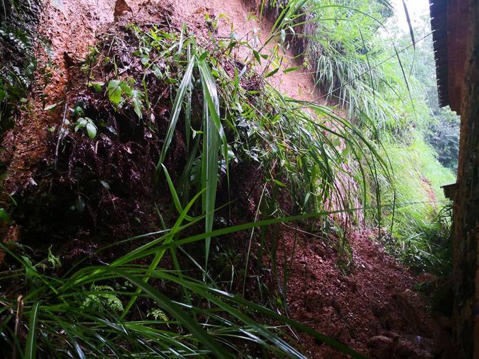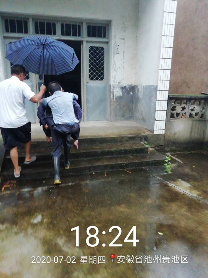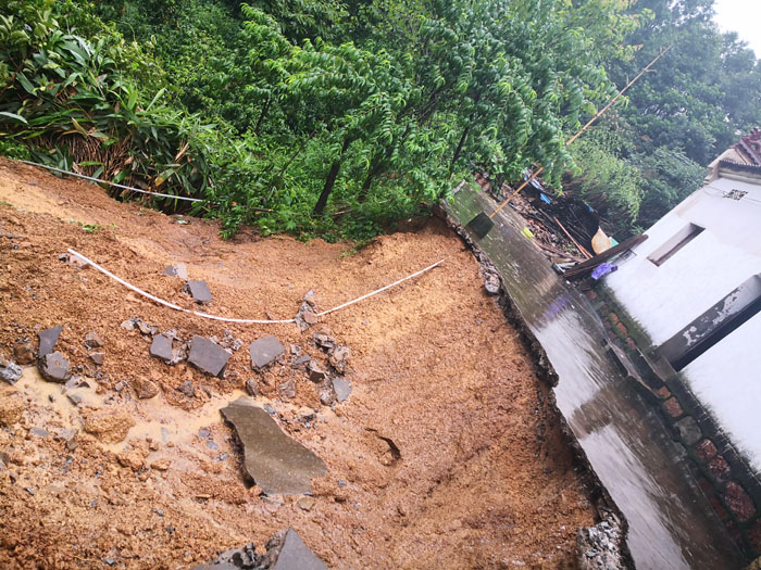 2020年6月以来,贵池区连降暴雨,大部分地区日降雨量超过100毫米,部分地区最大日降雨量超过150毫米。7月2日下午3点10分,贵池区自然资源和规划局直属中心所副所长刘俊平接到紧急地灾险情电话,里山街道双河村党支部书记钱试翔紧急来电称:该村西村组地质灾害点切坡建房户俞绍中、俞新国2户房前和屋后发生了大面积崩塌。险情就是命令,刘所长立即向贵池区自然资源和规划局以及贵池区里山街道办事处负责同志报告相关情况,同时紧急出动,会同池州市地环站吴均平站长及几位专家赶赴崩塌现场并进行快速、妥善处置。首先迅速将受困群众2户4人转移至安全地带,并在现场设置警示标志和警戒线,以防他人进入地灾崩塌现场和再次受到伤害等有效防止措施,切实保护人民生命财产安全。
