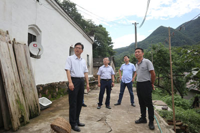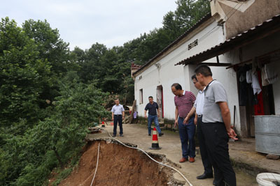近日池州市连降暴雨,地灾险情上升,2020年7月12日,安徽省地环专家一行来池州市贵池区里山街道办事处和梅街等地现场指导地灾防治避让知识。