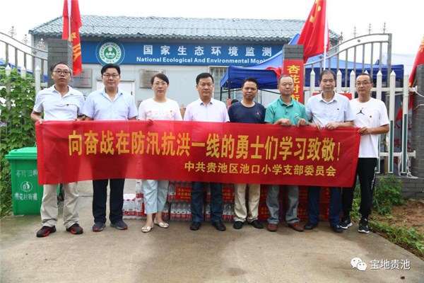 “你们辛苦了!这是我们学校党支部的一点心意,希望能贡献我们的微薄之力”。7月18日上午,池口小学党支部组织部分党员带上纯净水、泡面、生姜等生活物资,前往杏花村街道办事处防汛指挥所,看望慰问奋战在一线的防汛值守人员,并号召大家向奋战在防汛抢险一线的“勇士们”学习致敬。