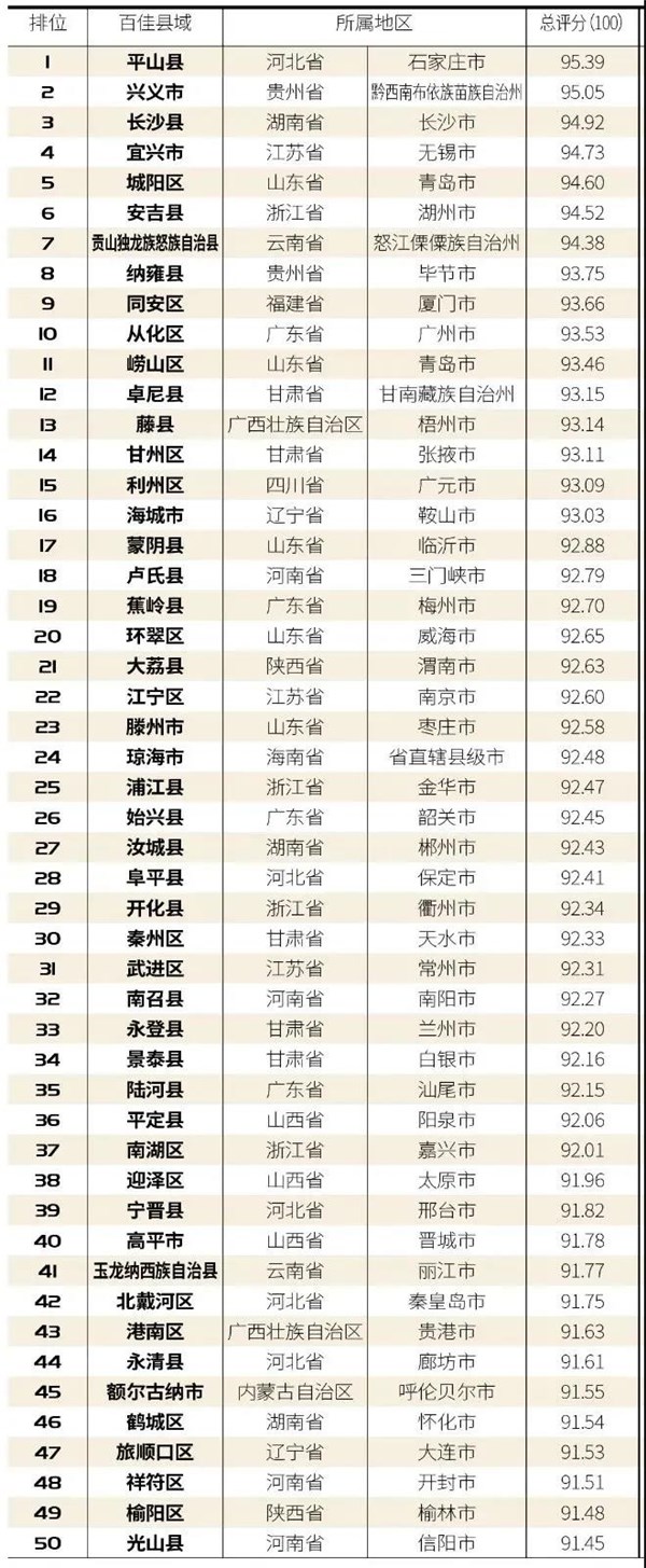 2020中国最美乡村百佳县市(完整榜单)