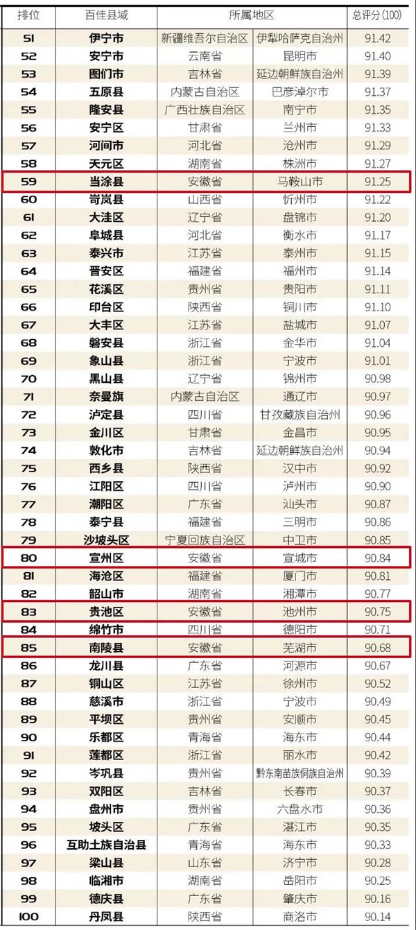 其中,安徽省马鞍山市当涂县、宣城市宣州区、池州市贵池区、芜湖市南陵县上榜“2020中国最美乡村百佳县市”。