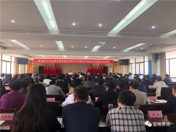 考核组认为,2019年,贵池区目标思路清晰,发展势头强劲,统筹协调有力,政治生态良好,在全市发展大局中起到示范引领作用。区委领导班子能够团结带领区人大、政府、政协及纪委监委领导班子,紧紧围绕中央、省委省政府及市委市政府决策部署,紧密结合贵池实际,践行新发展理念,全力推进“14810”工作主线,妥善应对新冠肺炎疫情带来的不利影响,经受住了急事难事的严峻考验,全区经济社会发展各项事业取得了明显成效。全区高质量发展势头良好,主要经济指标继续在全市领先领跑,在安徽省2019年度县域经济高质量发展考核中,名列A类县区第七位;项目建设再扩战果,获全市招商引资考核一等奖;三大攻坚连战连捷,在省成效考核中取得“好”的等次;营商环境有效改善,民生保障水平不断提高。在党的建设方面,贵池区深入贯彻新时代党的建设总要求,层层压实管党治党责任,思想政治建设有花有果、组织工作有声有色、作风建设有力有序、党风廉政建设有形有实,推动全面从严治党向纵深发展。