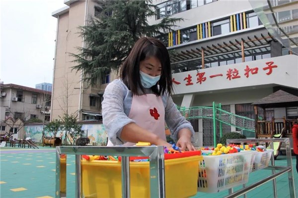 清洗窗帘、晾晒玩具、消毒碗筷、清洁地板、清扫校园……2月22日,小编在区幼儿园看到,各班级的老师们正忙成一团,加之当天气温较高,不少老师都热得额头冒汗了。“幼儿园的工作虽然辛苦,但为了孩子们的安全,我们依然觉得很开心。”该园保健医生朱红英开心地说道。