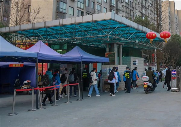 7:00左右,一批批穿着整齐校服的学生们精神抖擞地来到学校,在老师们的引导下携带《返校健康承诺书》,有序通过测温通道,并顺利进入校园。