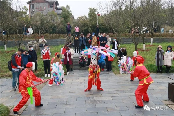 三月的杏花村,百花齐放、春色满园。18日,媒体团一行参观了问酒雕塑广场和唐茶村落,欣赏了古色古香的建筑和如画般的美景。杏花村文化旅游区还组织了非物质文化遗产展演活动。傩舞演员们手持祈福伞、铜钱等道具,举手投足间展现了傩戏的独特魅力。悠扬婉转充满浓郁地方特色的民歌、热闹的传统傩戏表演让媒体采风团驻足拍摄,大家纷纷拿起设备记录精彩瞬间。在樱花园,道路两旁的樱花竞相绽放,形成了独特的樱花长廊景观,吸引了媒体采风团的目光。江西省广播电视台主持人张佳琦说:“小时候就读过牧童遥指杏花村这首古诗,到这里,我才真正的知道了诗中的杏花村所指的就是池州的杏花村。刚才我们游览了一遍杏花村的景色,觉得非常的漂亮,特别是在樱花大道,大家都驻足下车,欣赏美景。我觉得杏花村在文化方面的各个业态都做的特别好,今后也会在节目中多多宣传池州的杏花村。”