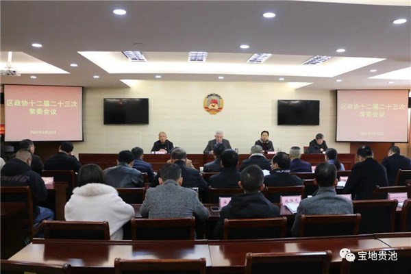 3月22日上午,区政协主席吴波主持召开区政协十二届二十三次常委会会议,区政协副主席张大春、吴淞,区政协秘书长杜荣生出席会议。
