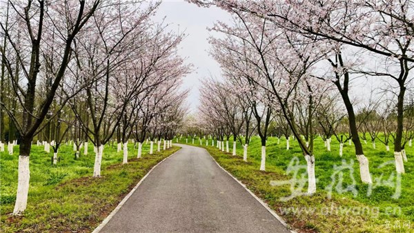 恰逢樱花绽放时,粉色花海惹人醉!樱花在游客的肩头上落樱如雪,在行人的发梢上花团锦簇。满载樱花的列车,在人们的阵阵惊叹声里,惬意地穿梭在花漾小径中。此外,杏花村里大片的郁金香,也引得采风团成员及众游客纷纷用相机捕捉春色,共赏浪漫时光。