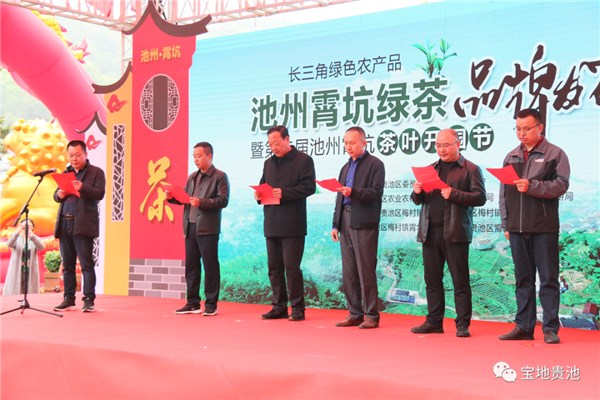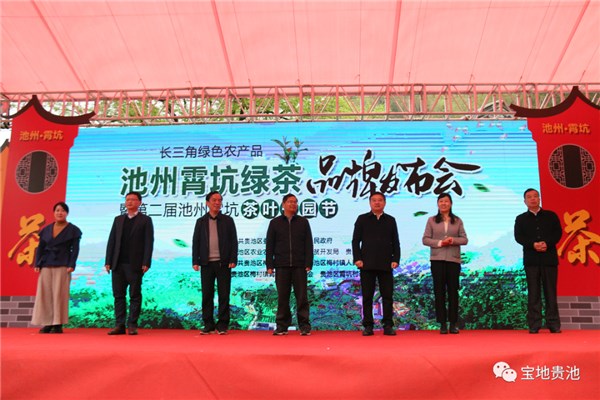 4月2日,由区委、区政府主办的长三角绿色农产品——“池州霄坑绿茶”品牌发布会暨第二届池州霄坑茶叶开园节活动正式开幕。市人大常委会副主任樊泽明、市人民政府副市长刘会秋出席开幕式。安徽农业大学茶与食品科技学院党委书记唐红萍与区人大常委会主任操礼旺共同为“安徽农业大学茶与食品科技学院贵池区茶产业研发中心”揭牌。区委副书记徐洁芳致欢迎词。区人大常委会副主任梅灏,区政协副主席吴淞一同参加活动。
