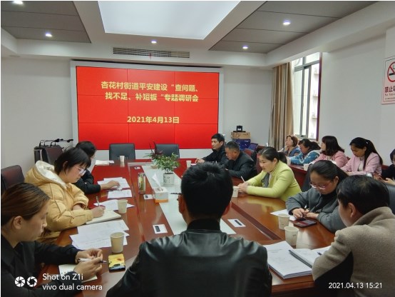 4月13日,杏花村街道平安建设“查问题、找不足、补短板”专题调研会在街道三楼会议室召开,会议由街道副主任杨星海同志主持,街道综治中心、信访办、杏花村司法所、各社区分管综治负责人、专职人民调解员参加会议。