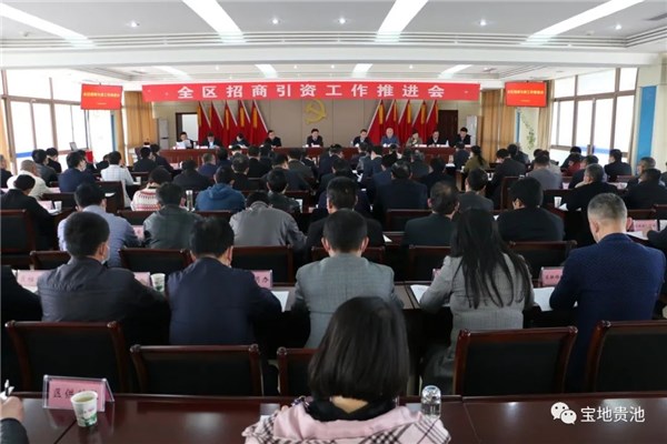 4月15日下午,我区召开招商引资工作推进会,盘点总结全区一季度招商引资工作,全面分析当前招商引资工作形势,进一步统一思想,再鼓干劲、再添措施,迅速掀起招商引资新热潮,以招商引资新成效厚植贵池发展新优势,实现“十四五”开好局、起好步。区委书记、平天湖风景区党工委书记马胜利出席会议并讲话。区长、平天湖风景区管委会主任崩兴宇主持会议。区人大常委会主任操礼旺,区政协主席吴波,区委副书记徐洁芳等区四大班子领导及平天湖风景区党工委委员、管委会副主任盛敏虎出席会议。