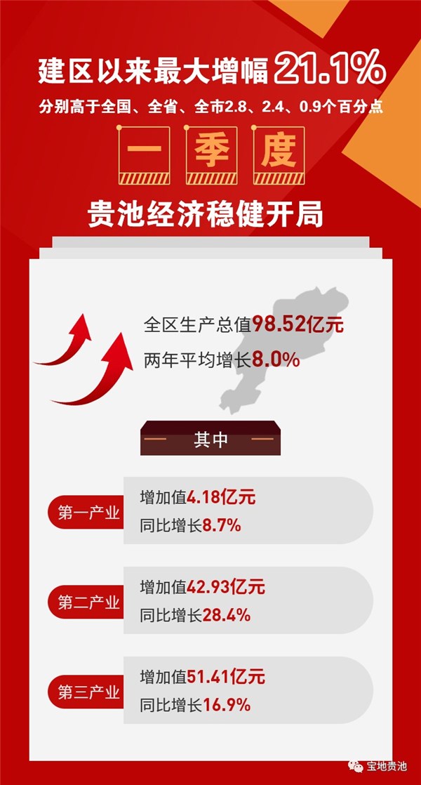 “从整体运行情况看,21.1%这个同比数据十分亮眼,创建区以来最大增幅。”区统计局负责人分析说,综观一季度经济运行形势,呈现稳定恢复、稳中加固、稳中向好态势,这也意味着贵池在“十四五”新阶段的第一个春天里实现了稳健开局,为全年“迈好第一步,见到新气象”打下了坚实基础。