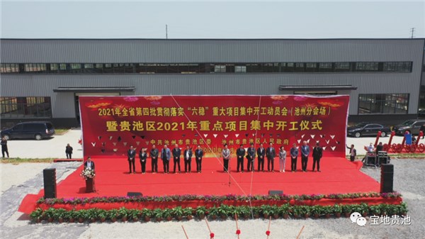 4月29日上午,2021年全省第四批贯彻落实“六稳”重大项目集中开工动员会(池州分会场)暨贵池区2021年重点项目集中开工仪式在池州高新区举行,投资总额达60亿元的20个重点项目集中开工,副市长贾瑄宣布开工令。