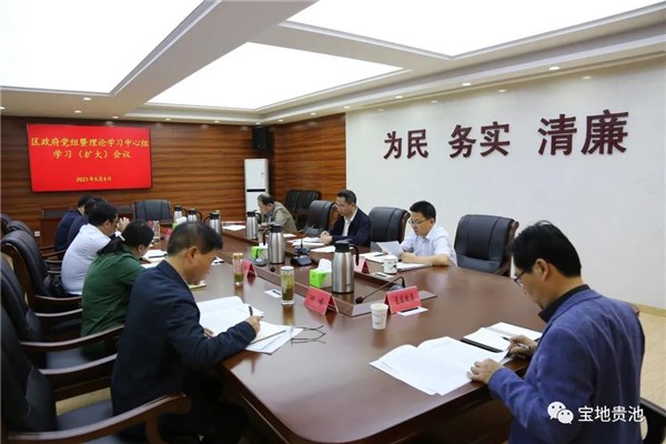 5月6日,区政府党组书记、区长崩兴宇主持召开区政府党组暨理论学习中心组学习(扩大)会议,深入学习《论中国共产党历史》和中央及省委、省政府相关会议精神,并研究政府系统贯彻落实工作。区领导张勇、孙传彪、斯文、王玉平、汪赛荣及平天湖风景区党工委委员、管委会副主任盛敏虎出席会议。