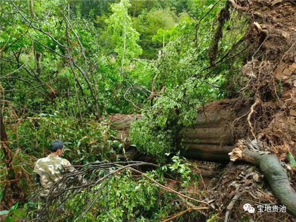 据了解,这株古树位于里山街道双河村双河组水口处,有210年树龄,属三级古树,树种为细叶青冈,树高26.5米、胸围339厘米、冠幅15米,一直生长正常。因古树处于河道风口处, 5月10日晚7时左右被大风吹倒,连根拔起,全部翻兜。所幸的是该树属我区今年投保的古树名木之一,投有“财产损失险”。获知古树受损信息后,区林业部门立即向保险公司报案。