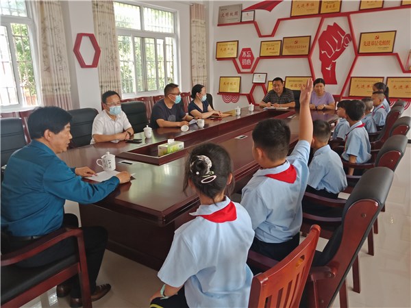 钱权柱一行在木闸中心学校与学校负责人座谈交流并听取意见建议,详细了解了师生的基本情况,询问大家在工作和生活上是否存在困难和问题,钱权柱要求镇团委和妇联与学校持续加强工作联系,为少年儿童办实事、办好事,重点提高对农村留守儿童等特殊群体的关注,全力帮助他们解决实际困难,让孩子们在同一片蓝天下茁壮成长。