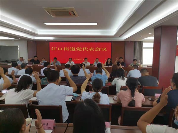 会上宣读贵池区委《关于江口街道党工委出席区第五次党代会代表选举的批复》、江口街道党代表选举办法和监票人、唱票人和计票人名单,并得到全体党员的一致通过。随后,按照每人一票进行无记名投票,由计票人清点选票,根据最终得票数确定了江口街道7名正式党代表出席中共池州市贵池区第五次党员代表大会。