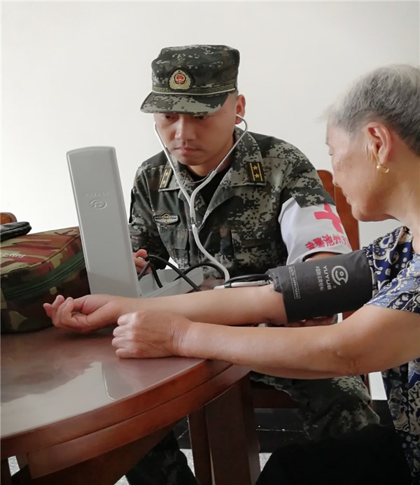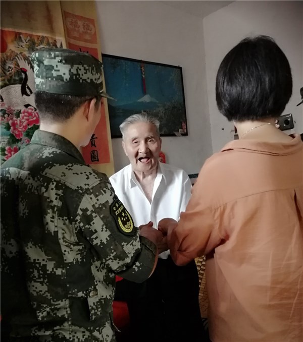胡勇一行每到一户,都与抗美援朝老战士亲切交谈,感谢他们为今天的美好生活付出的艰辛和做出的贡献,询问他们的生活情况,身体状况,嘱咐他们注意安全,保重身体。部队卫生员同志还给几位老战士测血压,普及健康小常识,发放家庭常备药,叮嘱他们注意饮食习惯和进行适当的锻炼,保持愉悦的心情。