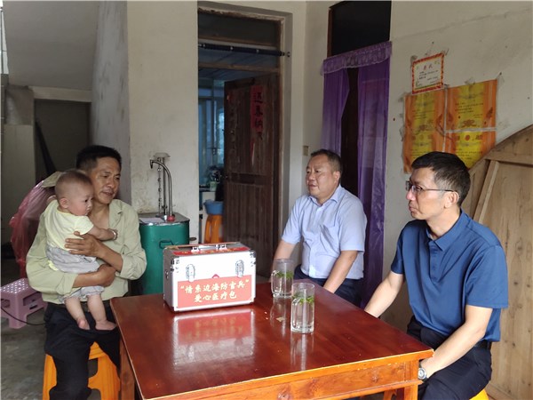 7月29-7月30日,县人民政府副县长陈荣亮和县人武部政委黄云斌在县退役军人事务局、有关乡镇负责同志的陪同下,分别带队前往蓉城、朱备、陵阳、丁桥等乡镇,走访慰问驻守在新疆、西藏、浙江等边防海岛的现役官兵家庭,为他们送上了慰问金和县双拥办、卫健委精心准备的爱心“医疗包”,感谢他们支持国防建设,支持子女安心服役。
