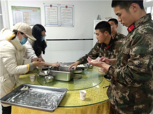 “今天俺可是跟着当兵的儿子沾了光,县里组织我们兵妈妈、军嫂和其他女同志走进军营,与战士们一起包饺子,我觉得这个“三八节”过得有意义,感觉像是走进儿子的部队,心里可高兴了。”3月8日下午,在武警石台中队食堂的“兵妈妈”李蕾说。
