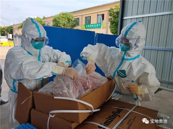 入场查验登记后,在工作人员指引下,大货车首先进行了一次全身消杀,接下来便是卸货、消毒搬运、核酸检测采样,最后分区入库储存。其中,核酸采样时,进口冷链食品的内外包装都需进行提取检测。整个流程规范严谨,大家全程穿戴防护服自我隔离保护,同时,司机和装卸工人等有关人员也需进行核酸检测。
