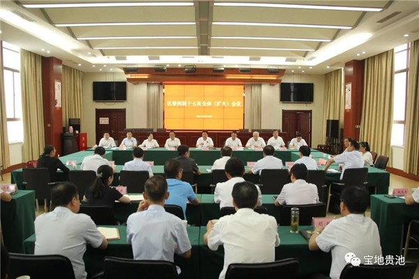 6月18日,区委四届十七次全体(扩大)会议召开,研究召开中国共产党池州市贵池区第五次代表大会有关事项。区委书记马胜利主持会议。区委副书记、区长崩兴宇,区人大常委会主任操礼旺,区政协主席吴波,区委副书记徐洁芳,区委常委方文生、汪英、江昌勤、张勇,以及区委委员、候补委员出席会议。区纪委委员列席会议。