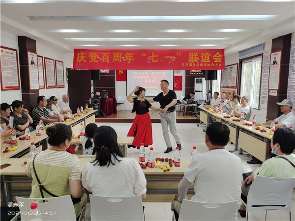 为了庆祝中国共产党成立100周年,讴歌党的光辉事迹,歌颂伟大的祖国,表达我们对党和祖国的热爱,月亮湖社区老年协会于6月26日在社区二楼多功能室举办了庆党百周年“七一”联谊会。