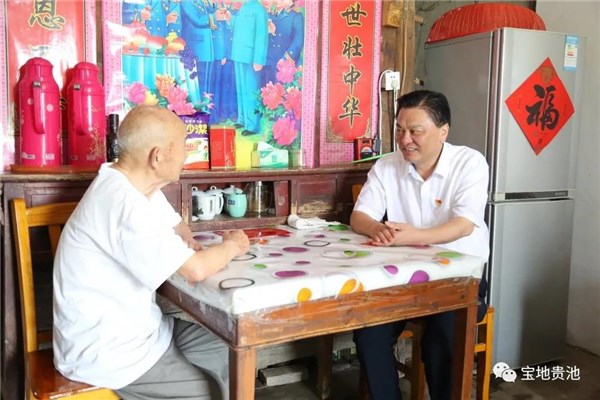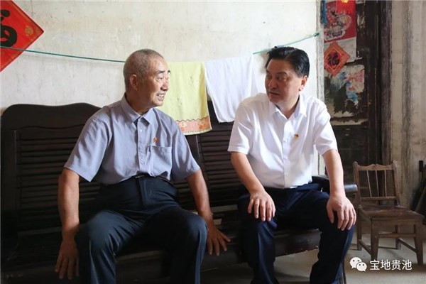 6月30日上午,马胜利来到老党员、老干部汪家让家中。汪老今年88岁,1949年6月参加革命工作,1950年8月加入中国共产党,1993年8月任贵池县人大常委会副主任。马胜利关切地询问老人的身体状况、生活情况,对其曾经作出的贡献表示敬意。马胜利说,老党员为革命作出了贡献,是党和国家的宝贵财富,是全社会学习的榜样,我们不能忘记离休老党员为党和国家的发展建设贡献的全部青春和力量,要带着责任和感情做好关爱帮扶工作,想方设法为老党员解难题、办实事,为他们安度晚年、发挥余热创造良好环境。