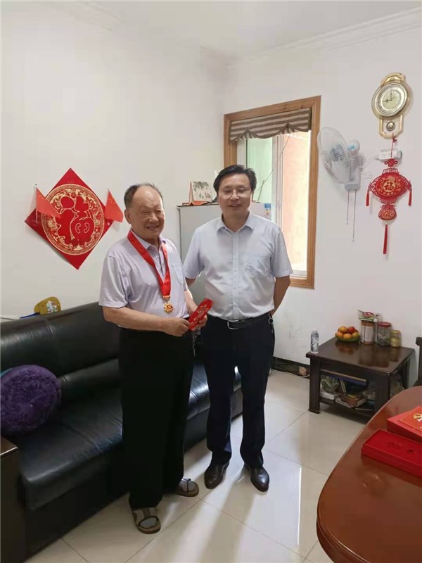 在有着65年党龄的老党员夏传炳家中,党委书记方昌平为他佩戴“光荣在党50年”纪念章,并亲切询问了老人的健康状况和家庭生活情况,感谢他为党和人民作出的贡献,祝福他生活幸福、健康长寿。老人深情地说:“中国共产党100年的艰辛斗争、卓绝拼搏,使中华民族站起来、富起来、强起来,没有共产党就没有新中国,这句话很简单但是最能诠释它的伟大、它的光荣。我很荣幸并很骄傲能够成为一名共产党员,此刻手上的这枚纪念章分量厚重,让我深深的感受到党对我们老党员的关怀与和温暖,这是党和人民给的荣誉,我永远记在心里。如今我已86岁了,但我定会永葆共产党员的精神本色,继续发挥余热,对身边人讲好党史故事,把党的优良作风传承下去。”