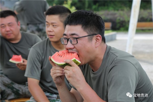 “看到他们冒着酷暑在这里训练,让我特别的感动,我们发自内心的带了一点降温的物品来看望他们,没有他们的无私奉献、迎难而上,就没有我们人民群众的安居乐业。今天,我们用歌声表达对人民子弟兵的感恩之情,让我们的军民鱼水之情更加深厚。”热心群众袁理珍深情地说道。