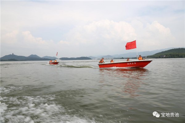 为锻炼应急队伍防汛抢险处置能力,全面提高水上应急队伍素质,增强防汛应急处置和水上抢险救灾能力,全力备战汛期,7月6日,池州军分区组织各县区民兵骨干,在平天湖水域开展水上防汛演练活动。池州军分区党委书记、大校政治委员宋怀金看望参训民兵并现场观摩演练。