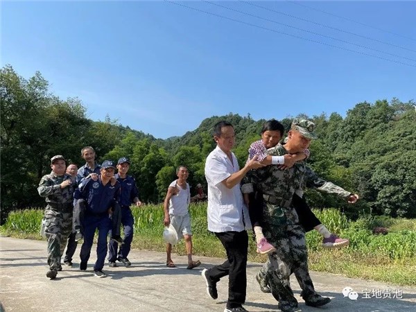 演练真实模拟了梅村镇珍溪村胡村组猫头山降雨量过大,可能发生地质灾害的场景。随着珍溪村地质巡查监测员胡润周一声“胡村组猫头山山脚下发现裂缝,请派人过来抢险!”的报告,演练进入紧张有序的环节。梅村镇民兵应急分队、梅村镇珍溪村党员突击队、池州曙光救援队梅村分队、梅村镇医疗救护队听从指挥长救援号令迅速集结,投入救援,及时撤离受威胁群众,保障人民群众生命财产安全。