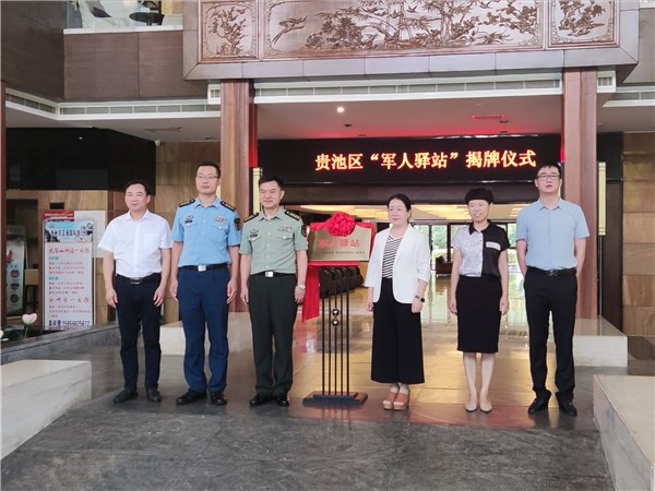 7月29日,雨过天晴,贵池区“军人驿站”揭牌仪式在两家星级酒店如期举行。池州军分区党委书记、政委宋怀金,贵池区委副书记徐洁芳,贵池区委常委、区人武部政委冯涛,贵池区退役军人事务局主要负责同志以及其他军地相关工作人员,共同参加揭牌仪式。