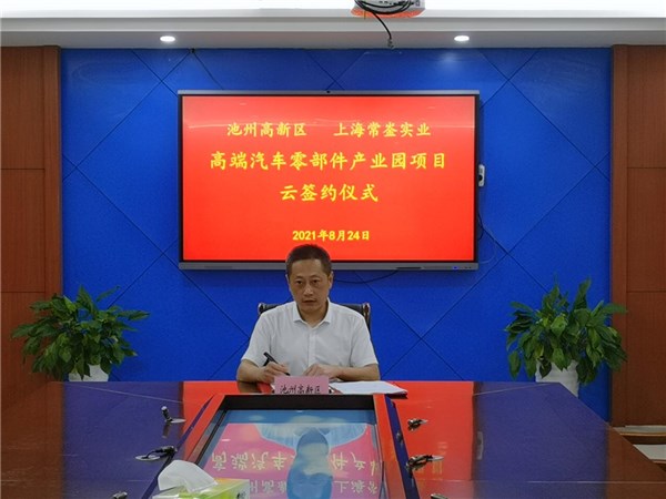 即便是新冠疫情带来的这桶“凉水”,也无法冷却池州高新区“双百攻坚”的招商热潮。8月24日,在池州高新区的会议室里,举行了一场特殊的项目签约仪式:由上海常崟实业有限公司投资15亿元的汽车零部件及配件生产项目在“云端”成功签约。