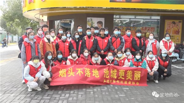 12月13日,贵池区青年志愿者协会组织志愿者在翠微社区、月亮湖社区开展“烟头不落地·池州更美丽”新时代文明实践志愿服务活动。
