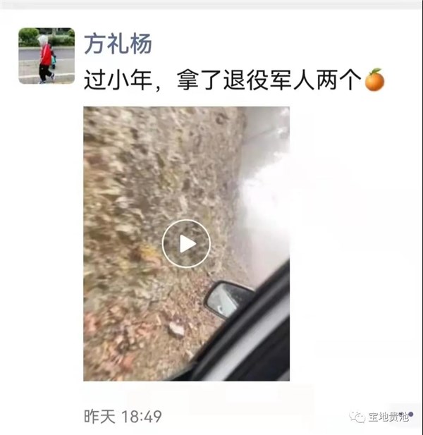 腊月廿四,棠溪镇退役军人服务站工作人员方礼杨的微信朋友圈里“炸开了锅”,一条标题为“过小年,拿了退役军人两个橘子”的朋友圈吸引了众人注意。不明所以的同事和好友好奇地点开标题下方短视频,才得知事情原委,于是纷纷点赞和留言评论。