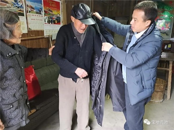 当天中午,听着屋外嘀嗒不停的雨滴声,注视着手机网络新闻又一次发布的天气预报情况,上午刚走访完部分优抚对象家庭、正在食堂就餐的周国庆和方礼杨等人眉头紧锁。他们深知,棠溪镇遍地山区,一旦大雪封山,几乎无路可走,走访慰问工作难以继续进行。想到这里,大家抓紧往嘴里扒了几口饭,便立即驱车出发。这次他们要赶赴距离最远、海拔600多米高的花庙村东风组,慰问一位87岁退役老兵江子明,也就是视频中的那位老人。