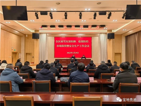 1月29日,全区雨雪灾害防御、疫情防控、市场保供暨安全生产工作会议召开,区长崩兴宇传达全省、全市有关会议精神并对我区有关工作开展作安排部署。区委常委、常务副区长张勇出席会议。区直有关部门、各镇街、园区主要负责人参加会议。
