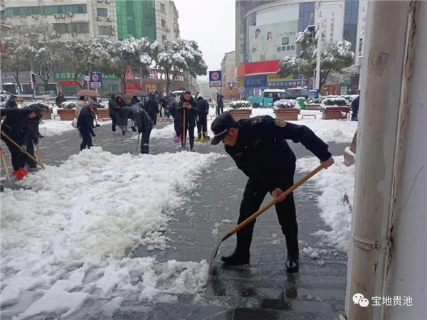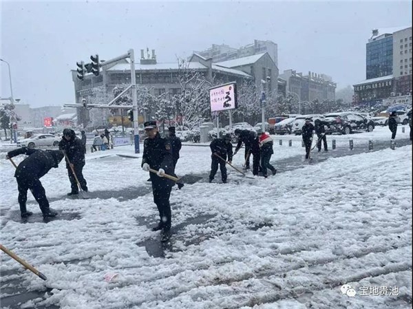 2月7日上午9时许,在主城区各街道,大家在寒风中浴“雪”奋战,不畏严寒和路面湿滑,手拿扫把和除雪铲,积极清扫责任区内路面积雪,成为茫茫雪景中一道靓丽的风景线,努力为市民群众提供良好的出行环境。“这次我们大概有600多名环卫工人在主城区各主道上进行铲雪,早上7点就开始启动铲雪模式,待主城区各主道上铲雪结束后,我们将分布到各小区内部进行铲雪。”侨银环保公司有关负责人说道。
