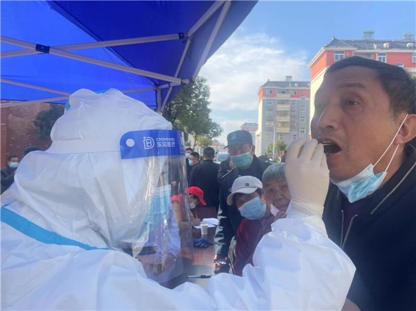 图为郑致远做核酸检测