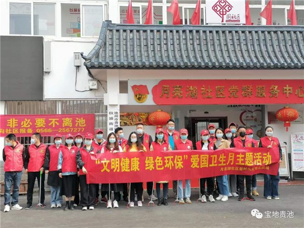 今年4月是全国第34个爱国卫生月。4月14日,秋浦街道月亮湖社区开展了“文明健康 绿色环保”爱国卫生月主题活动,社区工作人员、共建单位等30余人积极参与了此项活动。