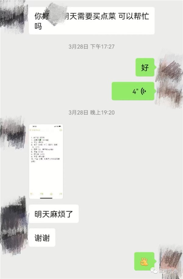 “有什么需求你们就给我打电话,或者在微信里和我说一下,我们帮你买来放在家门口。”这是东湖路社区工作人员杨林每天都在重复的一句话,作为片长之一的她只要微信声一响就立刻拿起手机,生怕错过任何一条重要的信息。每天,杨林都通过电话主动联络她所在片区的隔离群众,询问生活需求,按照他们提供的清单采购肉类、蔬菜、水果等生活物资,并且送到居家隔离人员家门口,在她离开后,隔离群众开门取菜,同时,社区还会及时联系物业安排人员对有居家隔离人员居住的楼道进行消杀。