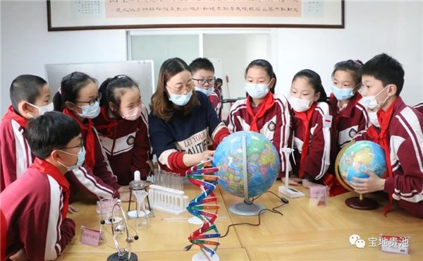 “我知道我知道,这个是地球的经线和纬线。”“这个是赤道,但它不是真实存在的一根线,而是人为划分,为了区分南北半球的!”“这个是基因双螺旋模型!我还自己制作过呢!”......学生们你一言我一语,讨论气氛热烈。当笔者问起他们是如何了解这么多知识时,学生们异口同声地回答道:“书上看到的!”