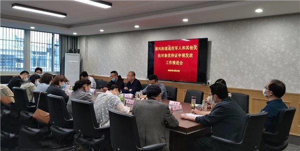 为高效优质推进我街道退役军人和其他优抚对象优待证申领办理工作,落实上级文件指示精神,更好服务保障退役军人。4月22日下午,清风街道召开退役军人优待证申领工作推进会,街道班子成员及社区书记参会。