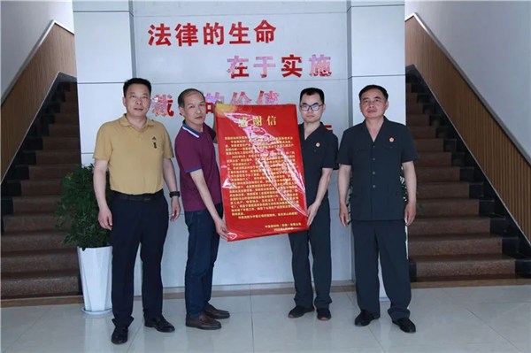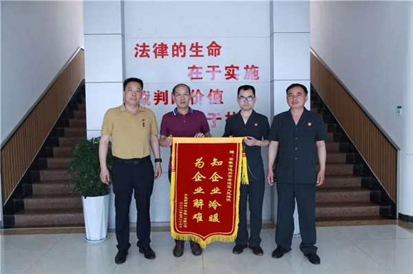 5月30日,某新材料有限公司专程从安庆将一面“知企冷暖,为企解难”的锦旗和《感谢信》送到池州市贵池区人民法院,对该院以调促和、信用修复、为企纾困的暖企执行工作表达谢意。
