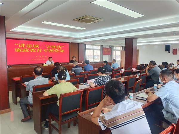 江口街道为深入推进改进工作作风,进一步增强党员干部的法纪观念和廉洁意识,6月13日上午街道组织召开“讲忠诚、守底线”廉政专题党课,街道全体党政领导、机关干部职工参加。