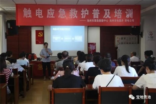 7月15日,池州市紧急救援中心、池州市电保办、池州供电公司联合在我区池阳街道清风社区举办了触电应急救护普及培训会,对社区居民进行用电安全知识和触电应急救护知识宣讲。